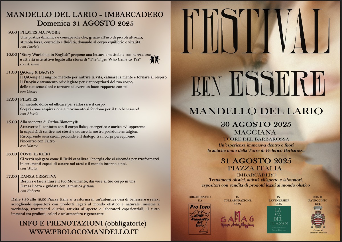 La Pro Loco di Mandello del Lario, con il Patrocinio del Comune di Mandello del Lario, organizza l'evento Ben Essere Festival