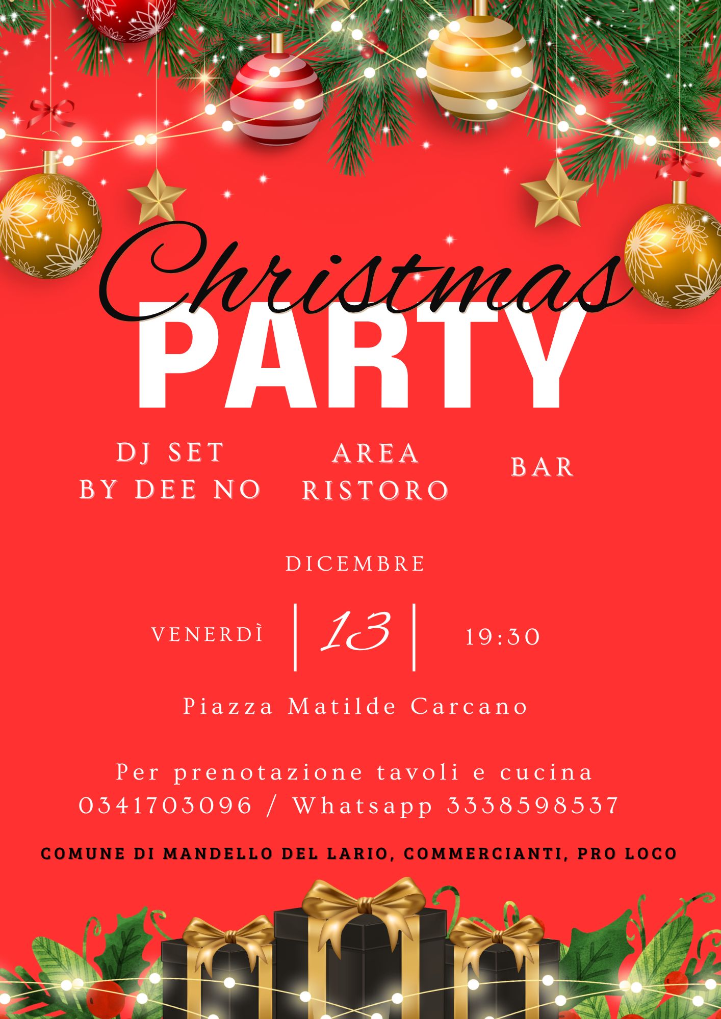 Venerdì 13 dicembre alle ore 19:30 Christmas Party con Dj set by DEE NO, in Piazza Matilde Carcano