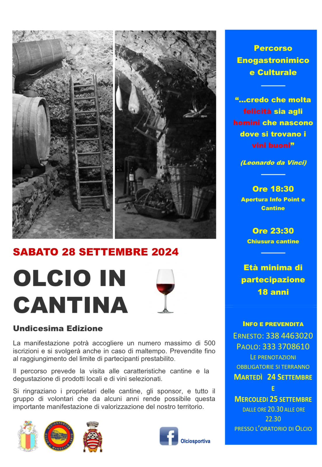 Le prenotazioni obbligatorie si terranno MARTEDI' 24 settembre e MERCOLEDI' 25 settembre dalle ore 20.30 alle ore 22.30 presso l'Oratorio di Olcio