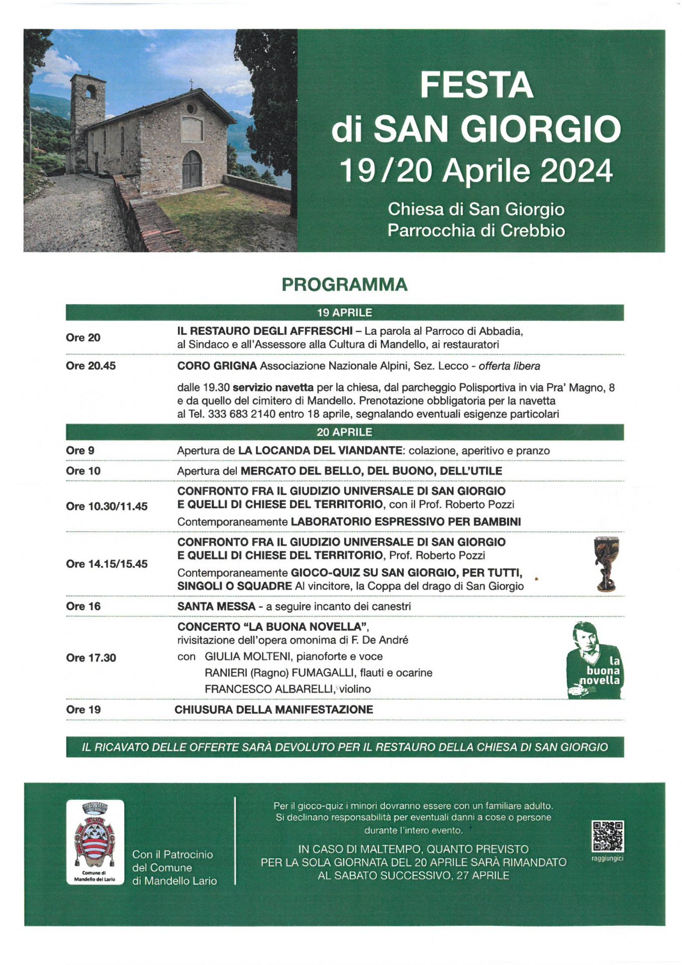 Il ricavato delle offerte sarà devoluto per il restauro della chiesa di San Giorgio