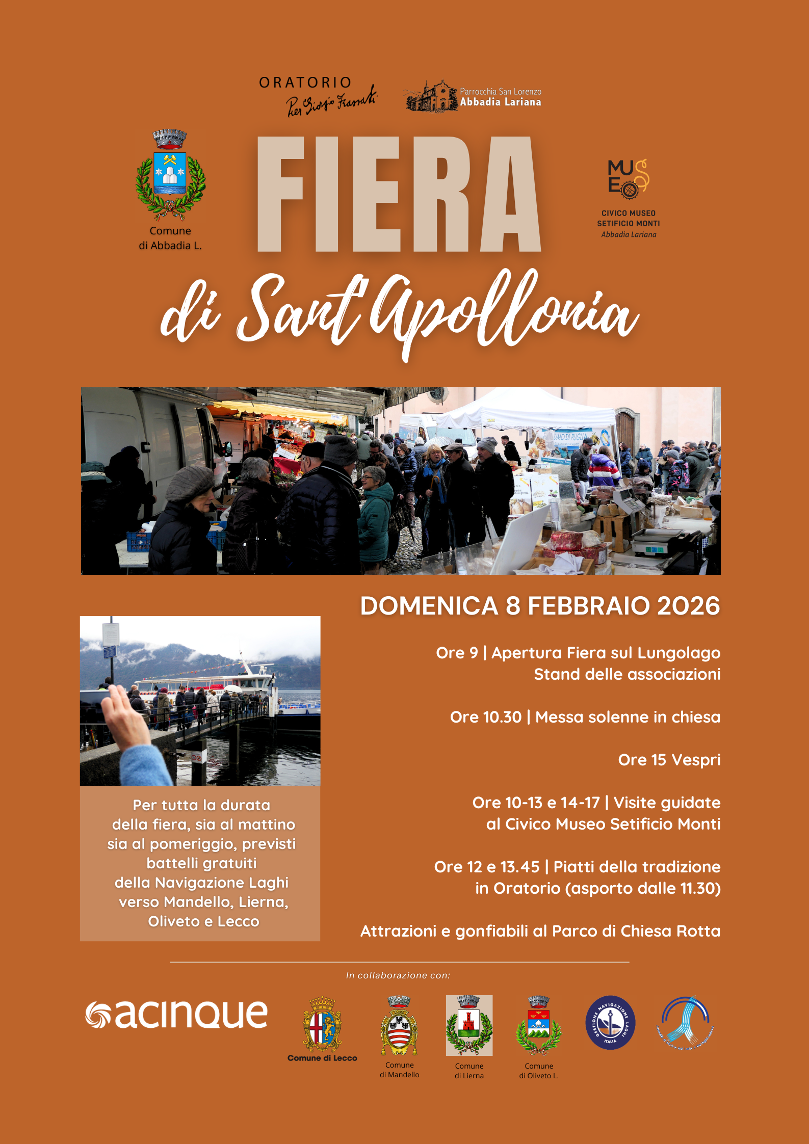Domenica 8 febbraio 2026 torna la Fiera Tradizionale di Sant'Apollonia ad Abbadia Lariana.