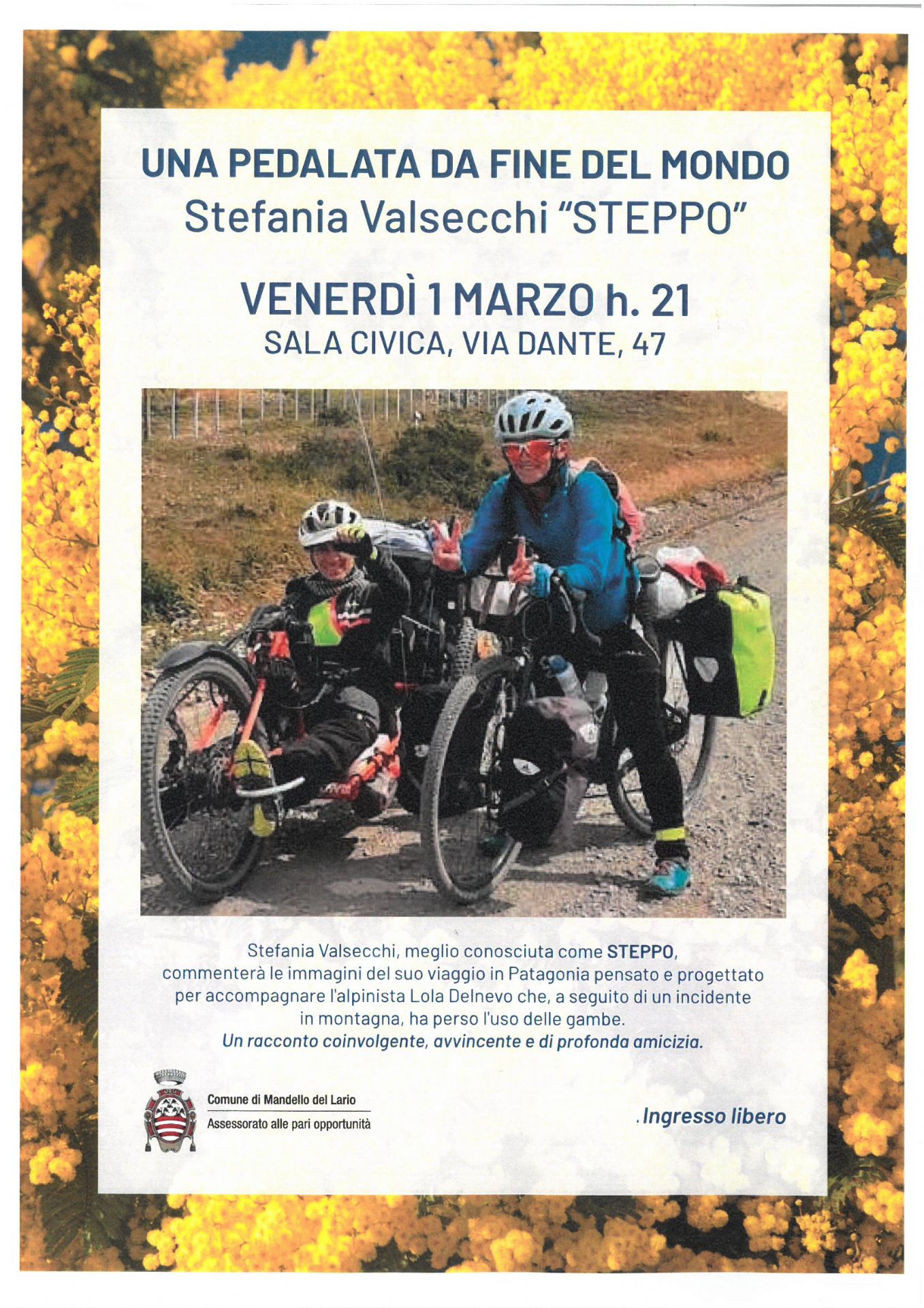 Stefania Valsecchi, meglio conosciuta come STEPPO, commenterà le immagini del suo viaggio in Patagonia pensato e progettato per accompagnare l'alpinista Lola Delnevo che, a seguito di un incidente in montagna, ha perso l'uso delle gambe.