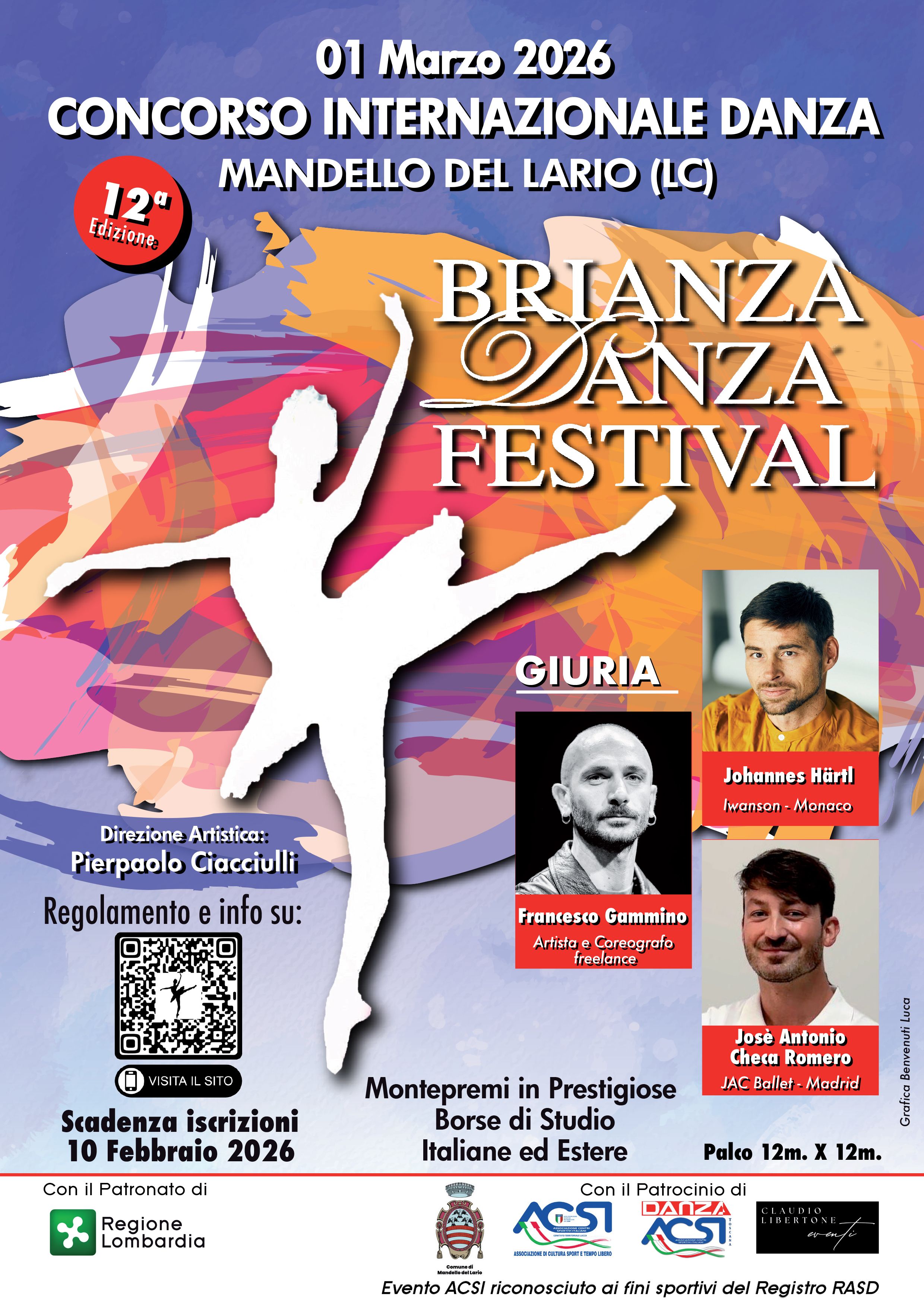Domenica 1 marzo presso la Polisportiva Mandello del Lario si terrà la 12esima edizione del Concorso Internazionale di Danza "Brianza Danza Festival"