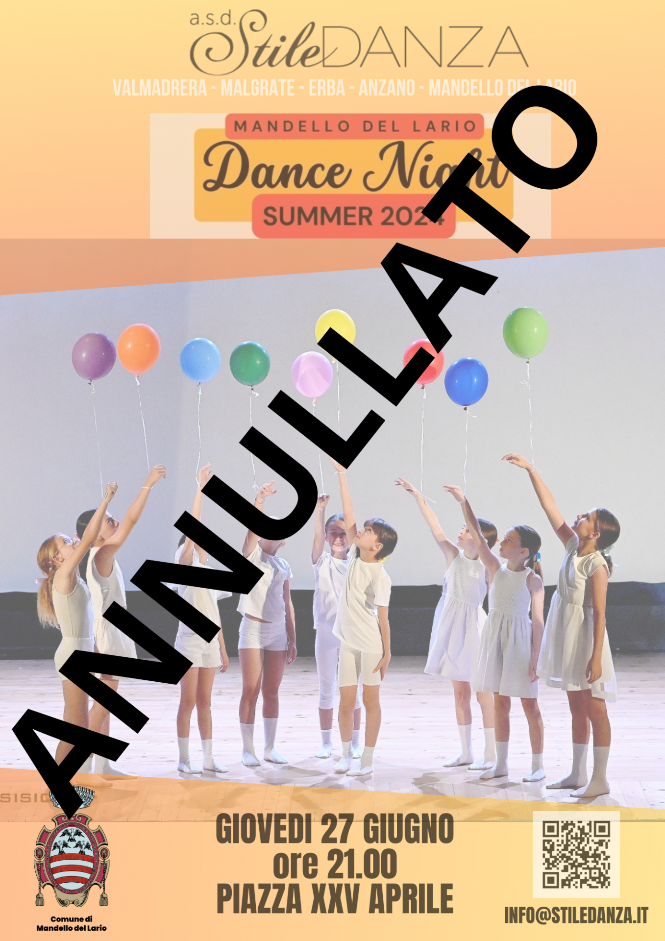 A causa di motivi non dipesi dall'Amministrazione Comunale, la serata di danza moderna prevista per giovedì 27 giugno in Piazza XXV Aprile è stata annullata. In sostituzione, si terrà l'evento Baby Dance e canto in Piazza Leonardo da Vinci.
