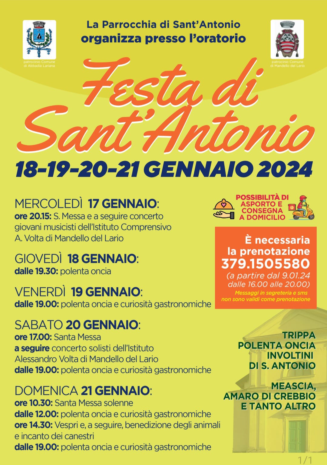 E' necessaria la prenotazione a partire dal 09/01/2024 dalle 16.00 alle 20.00 al n. 3791505580