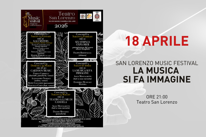 San Lorenzo Music Festival, con il Patrocinio del Comune di Mandello del Lario, presenta La Musica si fa Immagine, con Alice Montalbetti (testi e voce narrante) - Ensemble Musicale Materia