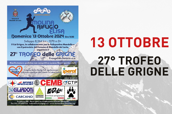 Il Cai Grigne, in collaborazione con la Polisportiva Mandello e con il Patrocinio del Comune di Mandello del Lari, organizza il 27° TROFEO DELLE GRIGNE Evangelista Ferrario a.m.