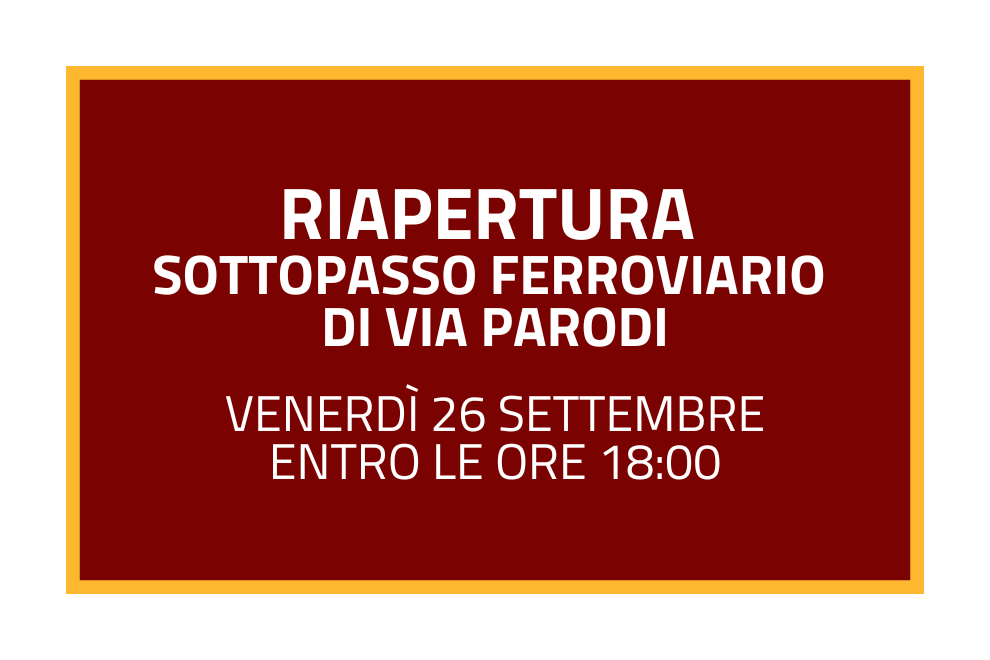 Oggi, venerdì 26 settembre entro le ore 18:00, verrà riaperto il sottopasso di via Parodi.