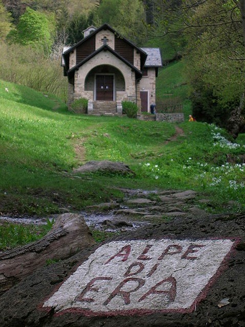 Sbucando da un sentiero serpeggiante fra castani, querce e frassini ci si trova inaspettatamente davanti alla Chiesetta dell’Alpe d’Era (832 m), eretta nel 1938 e situata nell'omonimo abitato, fino a qualche decennio fa abitato tutto l'anno.