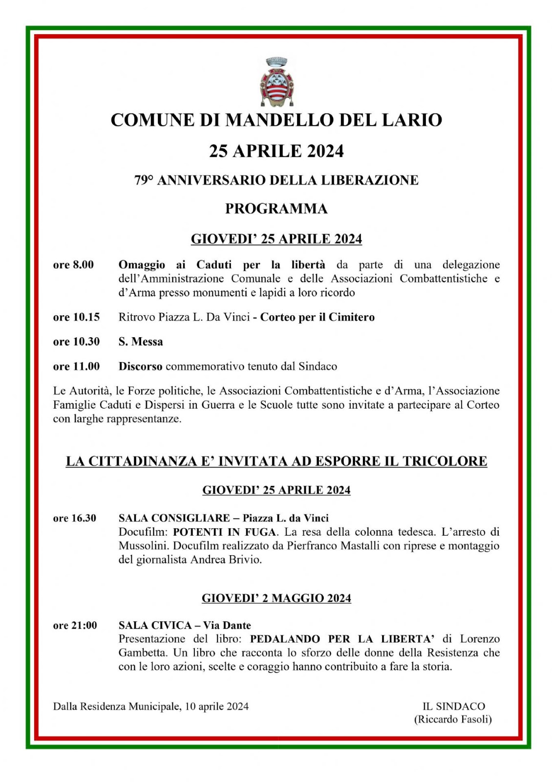 Le Autorità, le Forze politiche, le Associazioni Combattentistiche e d'Arma, l'Associazione Famiglie Caduti e Dispersi in Guerra e le scuole tutte sono invitate a partecipare al Corteo con larghe rappresentanze.