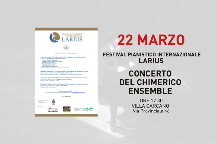 Sabato 22 marzo alle ore 17.30 presso Villa Carcano in via Provinciale 46, si terrà il Concerto del Chimerico Ensemble (Svizzera)