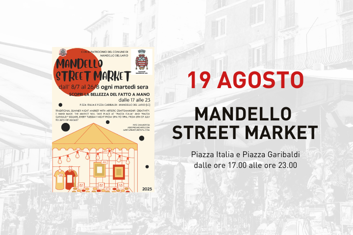 In occasione del periodo estivo, l'Associazione Asso Promo Arte in collaborazione e con il Patrocinio del Comune di Mandello del Lario, realizza un mercatino denominato "Mandello Street Market" in Piazza Italia, zona imbarcadero, presso il centro storico di Mandello Lario.