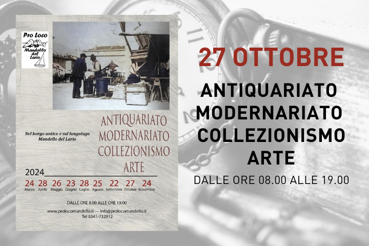 Il vecchio borgo e il lungolago di Mandello Lario accoglieranno, ogni quarta domenica del mese il mercatino dell'antiquariato - modernariato e collezionismo.