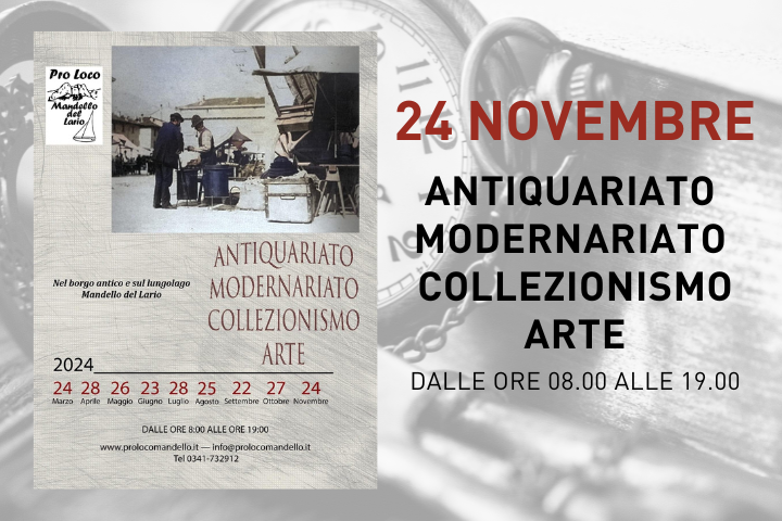 Il vecchio borgo e il lungolago di Mandello Lario accoglieranno, ogni quarta domenica del mese il mercatino dell'antiquariato - modernariato e collezionismo.