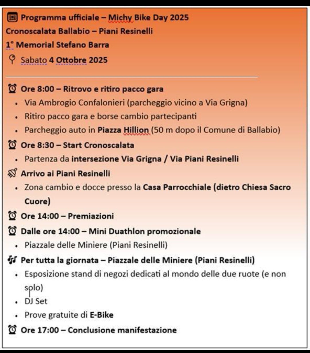 Michy Bike Day - 1° memorial Stefano Barra Cronoscalata Ballabio - Piani Resinelli