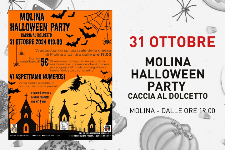 Caccia al dolcetto per le vie di Molina giovedì 31 ottobre dalle ore 19.00.