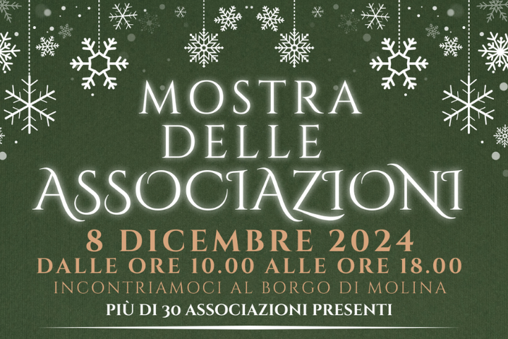 Domenica 8 dicembre 2024 dalle ore 10.00 alle ore 18.00 si terrà la tradizionale Mostra delle Associazioni.