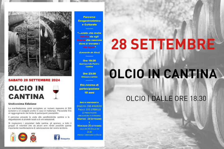 Le prenotazioni obbligatorie si terranno MARTEDI' 24 settembre e MERCOLEDI' 25 settembre dalle ore 20.30 alle ore 22.30 presso l'Oratorio di Olcio