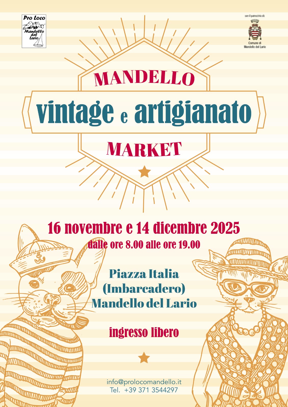 La Pro Loco di Mandello del Lario, con il patrocinio del Comune di Mandello del Lario, organizza per domenica 16 novembre e domenica 14 dicembre "Mandello vintage e artigianato market", dalle ore 08:00 alle 19:00 in piazza Italia.