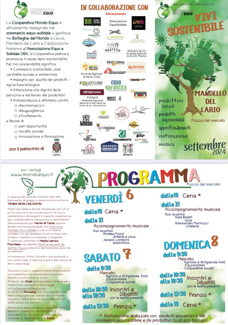 vi aspettano in Piazza del Mercato per Vivi Sostenibile 2024 con produttori locali, prodotti Equosolidali, approfondimenti e ristorazione.