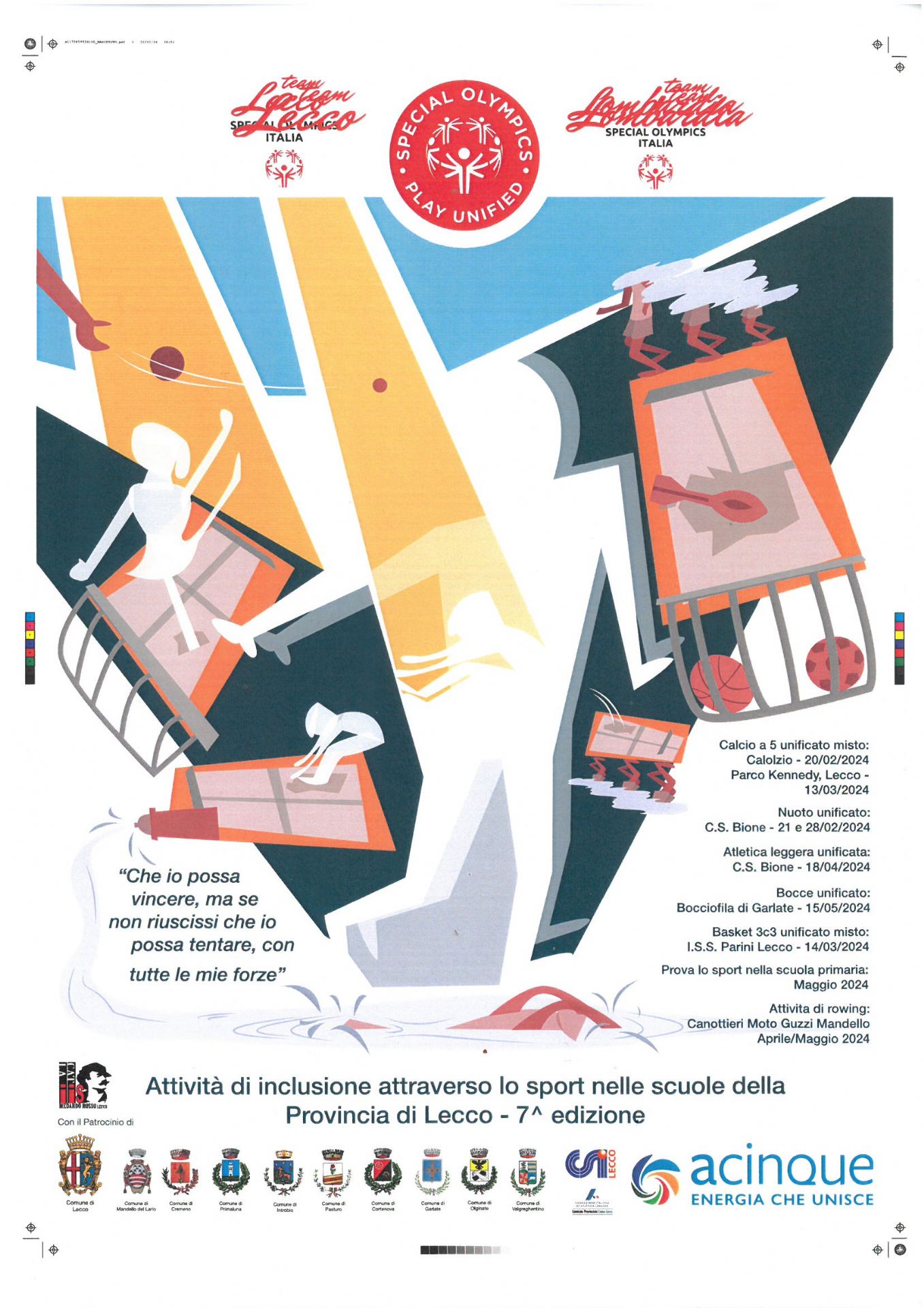 In occasione della 7^ edizione dell'Attività di inclusione attraverso lo Sport nelle scuole della provincia di Lecco, la Canottieri Moto Guzzi di Mandello del Lario organizza, da aprile a maggio l'Attività di rowing.