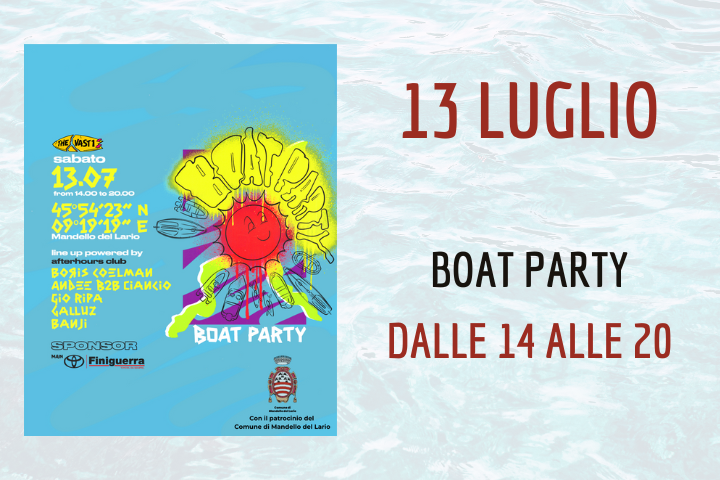 The-Vast1 organizza il Boat Party 2024 nelle acque del lago di Como tra Mandello del Lario e Abbadia Lariana.