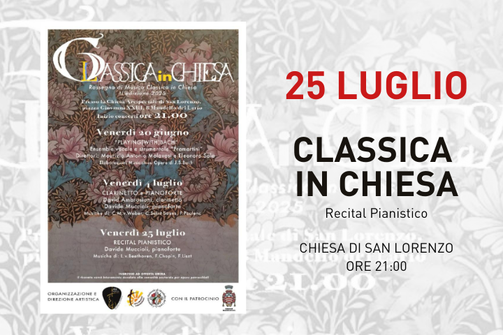 Venerdì 25 luglio ore 21:00 alla Chiesa Arcipretale di San Lorenzo