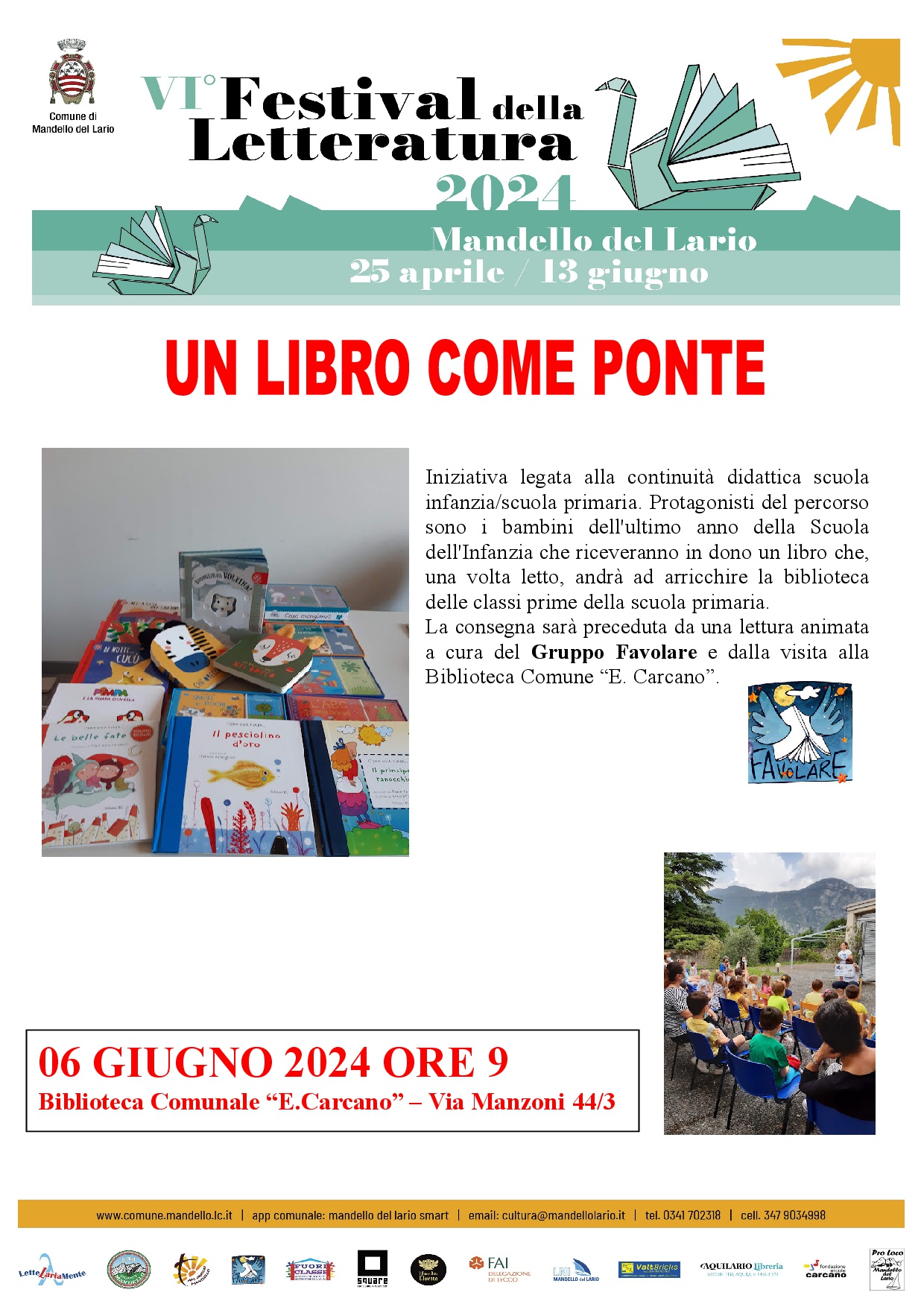 La consegna sarà preceduta da una lettura animata a cura del Gruppo Favolare e dalla visita alla Biblioteca Comunale "E. Carcano".