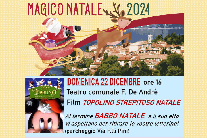 Domenica 22 dicembre alle ore 16.00 presso il Cinema Teatro De André verrà proiettato il film "Topolino strepitoso Natale"