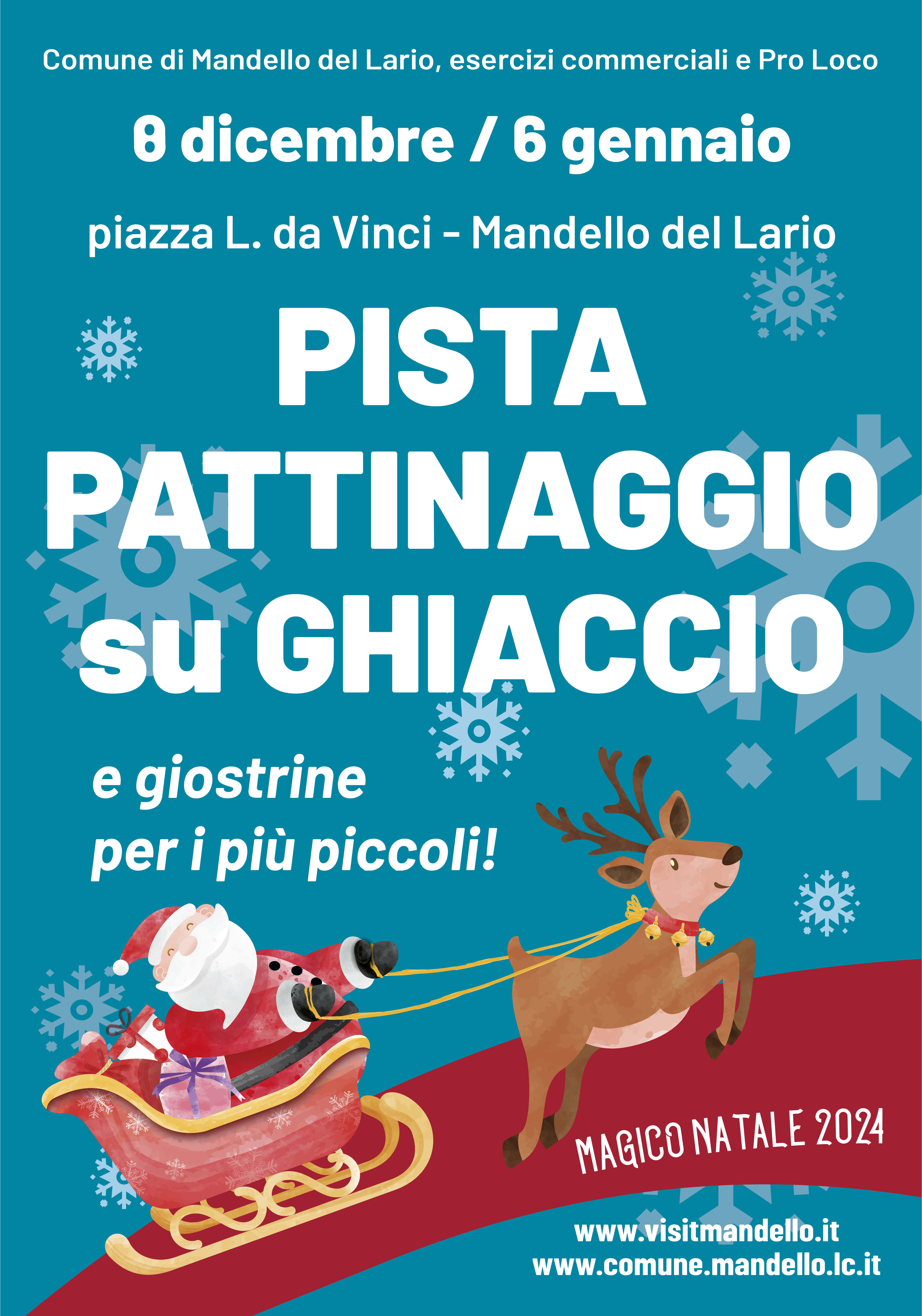 L'apertura della pista di pattinaggio, inizialmente prevista per il 6 dicembre, è stata posticipata a domenica 8 dicembre a causa di difficoltà tecniche legate alla formazione del ghiaccio, non dipendenti dal Comune.
