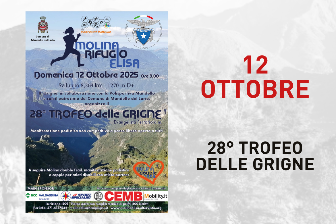 Il Cai Grigne, in collaborazione con la Polisportiva Mandello e con il Patrocinio del Comune di Mandello del Lari, organizza il 28° TROFEO DELLE GRIGNE Evangelista Ferrario a.m.