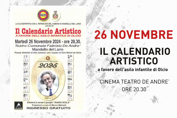 La Olciosportiva con il Patrocinio del Comune di Mandello del Lario presenta il calendario artistico a favore dell'asilo infantile di Olcio presso il Teatro Comunale Fabrizio De André
