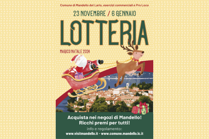 L’estrazione della lotteria si terrà giovedì 16 gennaio 2025 alle ore 21 presso la Struttura n. 1 Servizi Sociali e Culturali di Via Manzoni 44/3. L’elenco dei biglietti estratti sarà pubblicato sul sito istituzionale www.comune.mandello.lc.it e turistico www.visitmandello.it del Comune di Mandello del Lario, sui giornali locali e nei negozi aderenti all’iniziativa.