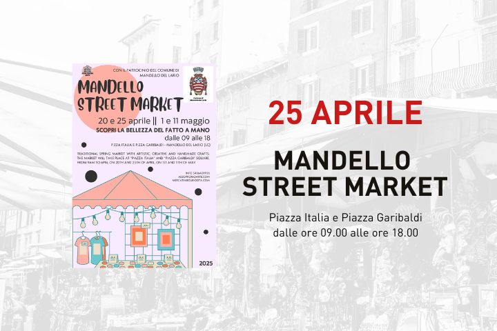 L'Associazione Asso Promo Arte in collaborazione e con il Patrocinio del Comune di Mandello del Lario, realizza un mercatino denominato "Mandello Street Market" in Piazza Italia, zona imbarcadero, presso il centro storico di Mandello Lario.