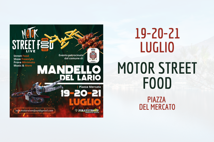 L'associazione Pirate Troop Eventi ASD organizza il Motor Street Food con street food e area shop, spettacoli freestyle di moto, minimoto per bambini e area giochi.