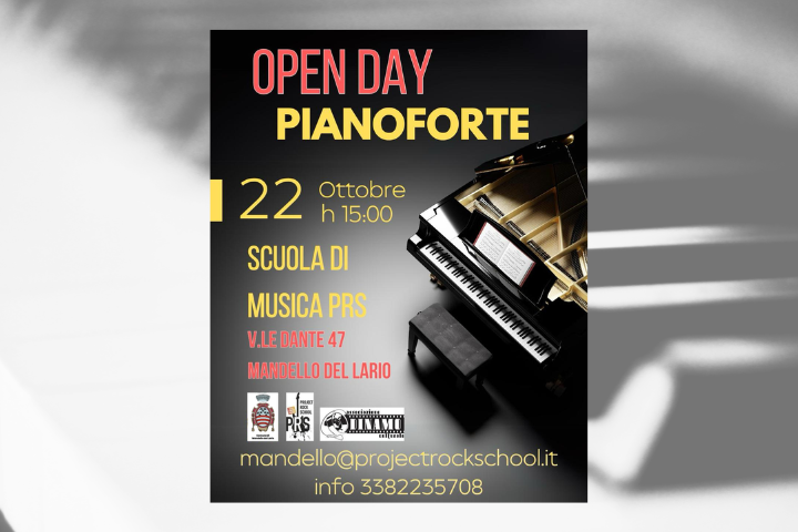 Mercoledì 22 ottobre alle ore 15:00, la Project Rock School - scuola di musica comunale di Mandello del Lario - apre le porte della sua sede in via Dante 47 per un Open Day di Pianoforte: un’occasione per conoscere la scuola, incontrare l’insegnante e partecipare a una lezione introduttiva senza alcun impegno.