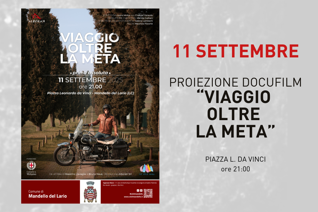 Il Comune di Mandello del Lario, nell’ambito degli eventi del Motoraduno Internazionale Città dei Motori, organizza la proiezione del docufilm Moto Guzzi "Viaggio oltre la meta".