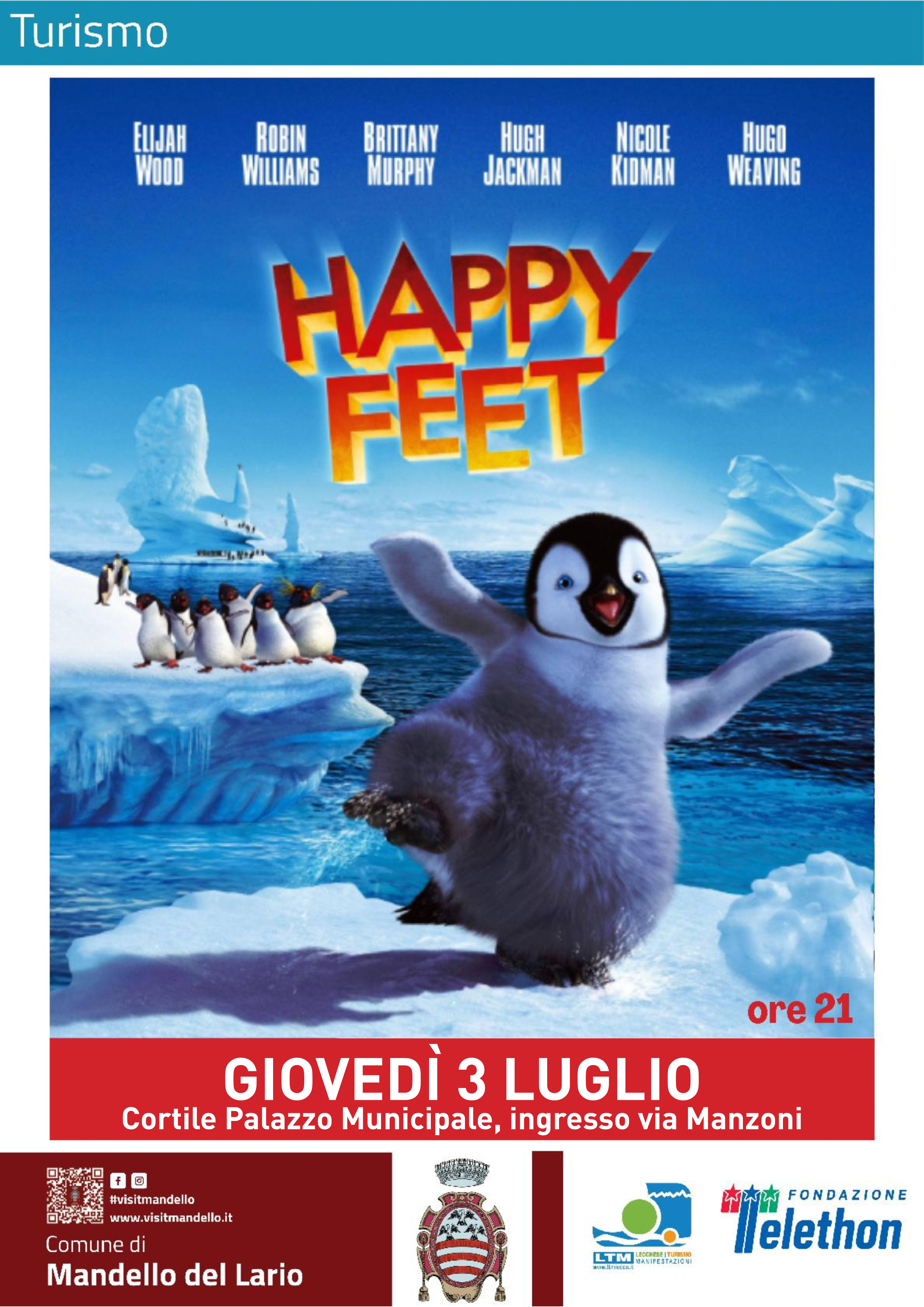 In programma la proiezione di Happy Feet.