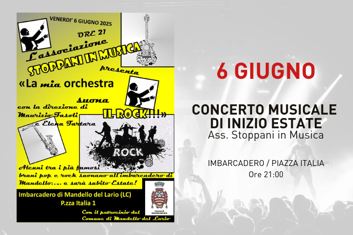 L'Associazione Stoppani in Musica, con il Patrocinio del Comune di Mandello del Lario, organizza il concerto musicale di inizio estate.