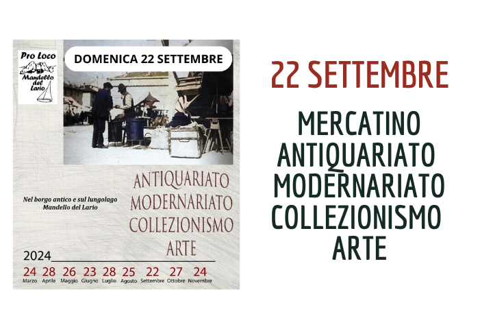 Il vecchio borgo e il lungolago di Mandello Lario accoglieranno, ogni quarta domenica del mese il mercatino dell'antiquariato - modernariato e collezionismo.