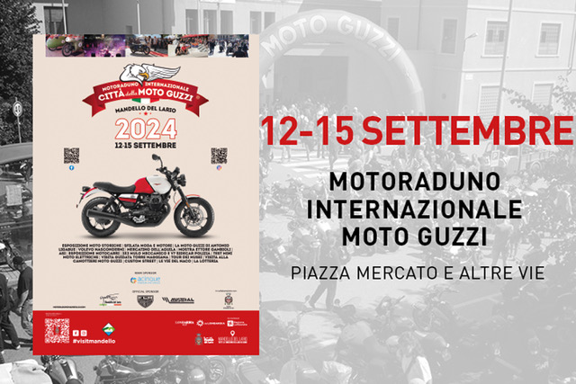 Dal 12 al 15 Settembre 2024 a Mandello del Lario (LC) (Italia), l'annuale appuntamento per tutti gli appassionati delle due ruote: il Motoraduno Internazionale Moto Guzzi