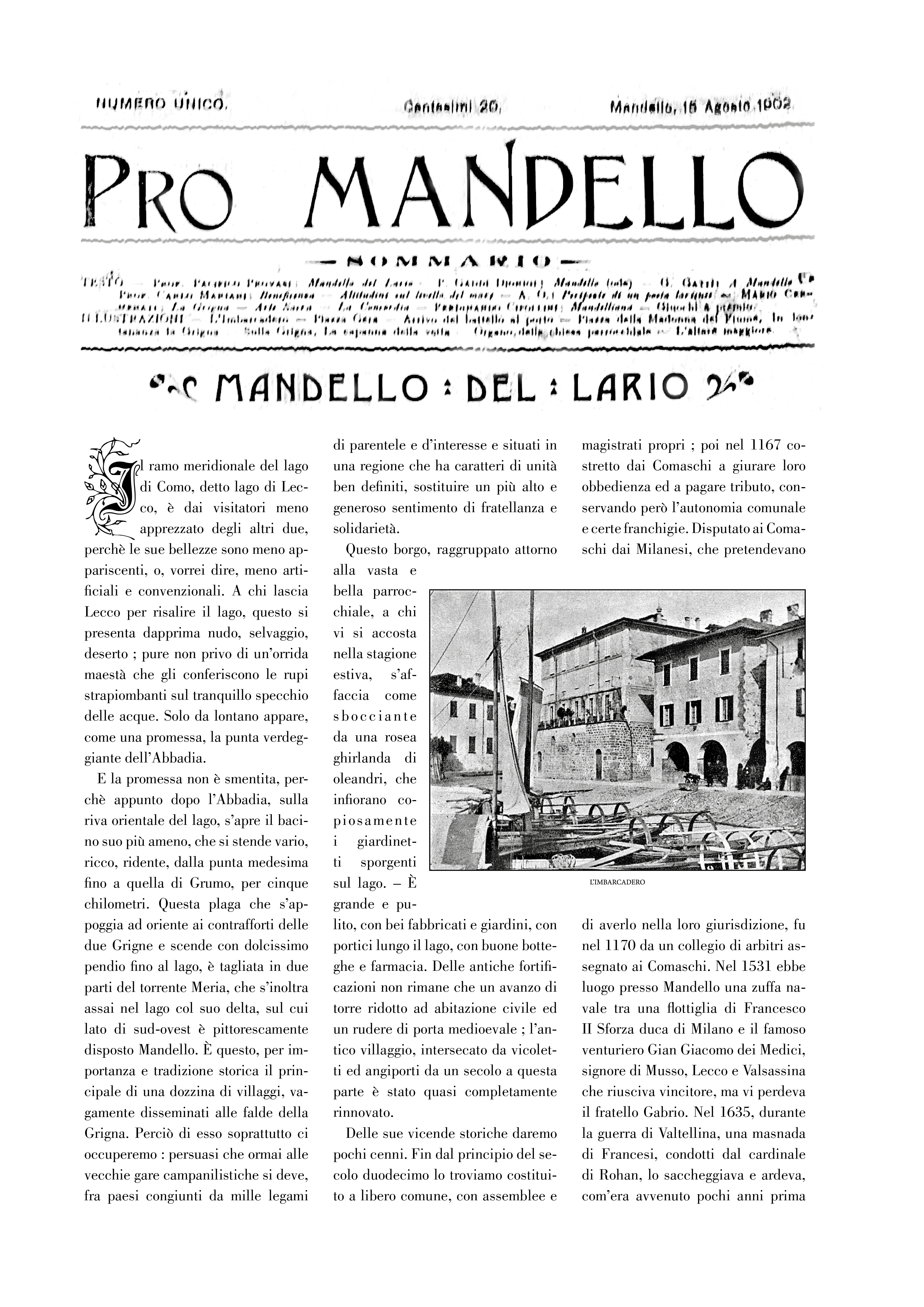 Presentazione ufficiale del giornale "Pro Mandello" - Numero unico del 1902