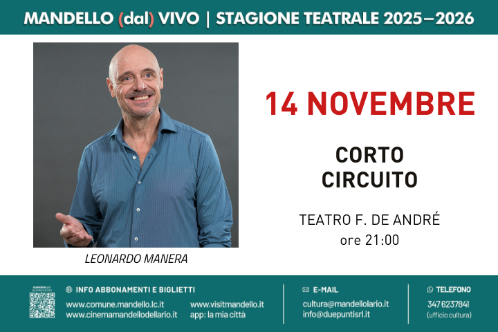 È la nostra vita, nella quale è difficile prendere una direzione ed è spesso impossibile scegliere tra dimensione etica ed estetica. È, in qualche modo, il caos degli opposti. In “Corto circuito”, Leonardo Manera, tra monologhi e personaggi contemporanei, prova attraverso la comicità a fare chiarezza, confrontandosi con la voce di un dio laico della modernità che lo induce continuamente in tentazione. Quale sarà la scelta finale?